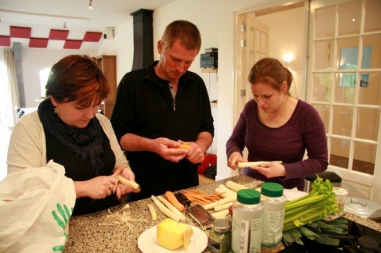 Bardzo ciekawa zabawa - wspólne przygotowywanie posiłków w podziale na 4 ekipy i na czas!