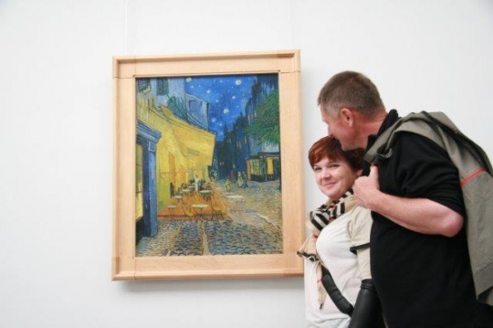 Arleta i Jarek przy jednym z bardziej słynnych dzieł Van Gogh'a - kawiarenki nocą