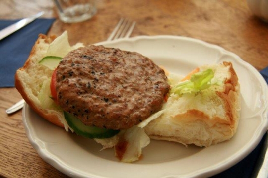 I ekologiczne hamburgery...na szczęście jest jeszcze sałata i pomidor...
