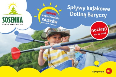 Wypożyczalnia kajaków "Sosenka" oferuje nowoczesne kajaki w standardzie 2+1 (dziecko jako 3 osoba w...