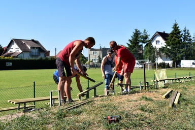 Po uporządkowaniu boiska nadeszła pora na remont trybuny. Zawodnicy wraz z przyjaciółmi klubu...