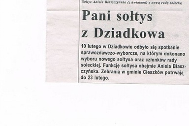 NOWI WYBRANI;Sołtys - ANIELA BŁASZCZYŃSKARada Sołecka - ANNA KĘPA , ROBERT ŻYWICZKO , ...