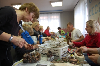 Odwiedziliśmy w ramach wizyty studyjnej Cesarskie Kadyny (warsztaty z malowania płytek ceramicznych), Jędrychowo, czyli Wioskę "Jak u Babci", gdzie jak u naszych własnych babć przystało, nakarmiono nas i napojono przed powrotną drogą smacznie i obficie, Wielkie Wierzno i Nowe Sadłuki, czyli "Wioskę Rodzinną", gdzie chętni dosiadali klaczy, rzucali do celu podkowami i grali w ogromne bierki, a zmarzluchy grzały się przy ognisku, Łęcze, czyli "Wioskę Wiatru i Podcieni", w której udaliśmy się w symboliczną podróż do czasów dzieciństwa konstruując wiatraczki, Kamionek Wielki – "Wioskę Ryb i Szuwarów", gdzie czerpaliśmy papier pod okiem prawdziwej Rusałki oraz, jedyne w tym gronie miasteczko, Frombork – "Gród Kopernika", gdzie poza programem i na własne życzenie podziwialiśmy kunszt dawnych mistrzów snycerstwa, malarstwa, rzeźby i architektury w Muzeum i Katedrze na Wzgórzu. Odwiedziliśmy też spontanicznie zupełnie nowy budynek Urzędu Gminy przy ryneczku w Tolkmicku, gdzie otwarto dla zwiedzających wieżę widokową z lunetami i muzeum regionalne z bogatą ekspozycją znaleziśk archeologicznych z grodzisk pod Tolkmickiem i Łęczem.Nie wszystko przebiegło zgodnie z planem, ale tak bywa jesienią, gdy pogoda kapryśna i wiatr urywa głowy.