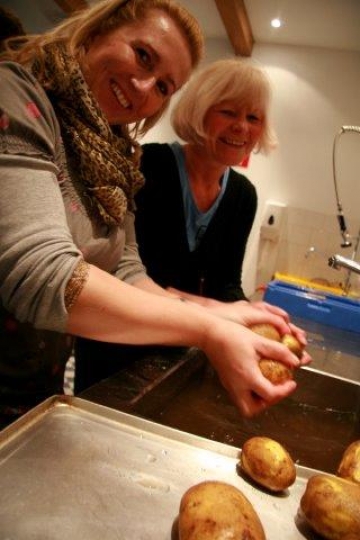 Bardzo ciekawa zabawa - wspólne przygotowywanie posiłków w podziale na 4 ekipy i na czas!